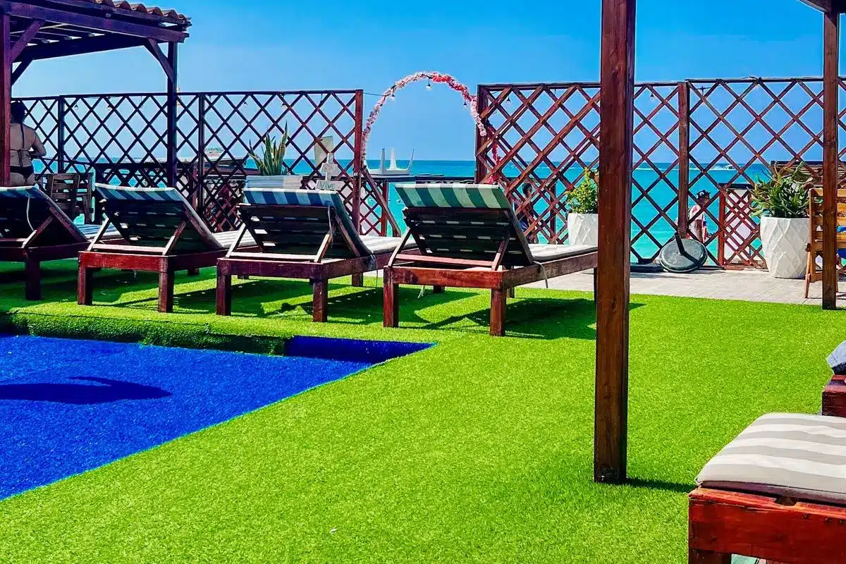 Afterwards, the staff will take your lunch order, which will be served with the juice of the day. Throughout your stay, you can freely enjoy the swimming pool, relaxation areas, coffee, Wi-Fi, and freshwater showers.